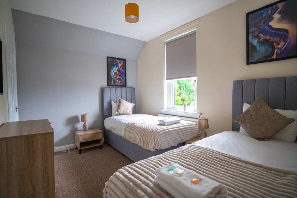 This Serviced Accommodation property based in , North Lanarkshire, Scotland, UK offers 3 bed(s), within 2 bedroom(s). The property also has 1 bathroom(s).